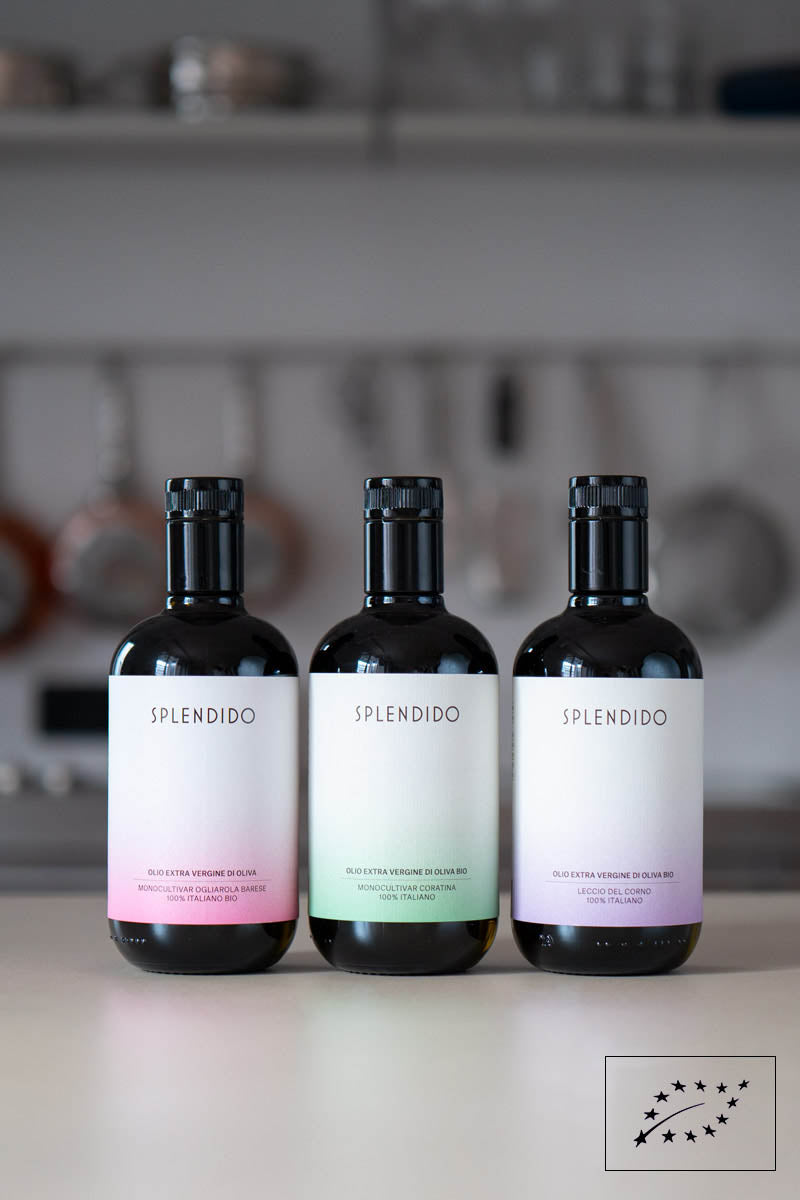 Sortenreines Olivenöl Extra Vergine in Bioqualität aus seltenen Leccio del Corno-Olive. Exklusive Abfüllung für Splendido in Spitzenqualität.